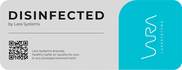 A készüléket a légkezelő egység (AHU) közelébe kell helyezni. Egy kábel, amely a fertőtlenítő folyadékot szállítja, behelyezendő az AHU-ba, és egy vagy két további kábel a légcsatornákba megy attól függően, hogy a légcsatorna megoszlik-e az AHU közelében. A vásárlással együtt részletes kézikönyvet kap a Lara Systems telepítéséhez.
